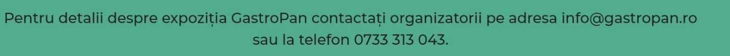 21-23 septembrie 2021 va fi perioada cea mai importantă din calendarul profesional al oricărui manager sau specialist care activează în sectoarele de panificație, cofetărie sau HoReCa. Asta pentru că vizitarea expoziției internaționale GastroPan va asigura contactul jucătorilor pieței cu cele mai noi și eficiente tehnologii și idei de afaceri, cu cei mai importanți furnizori din domeniu și cu cele mai de actualitate tehnici de lucru.